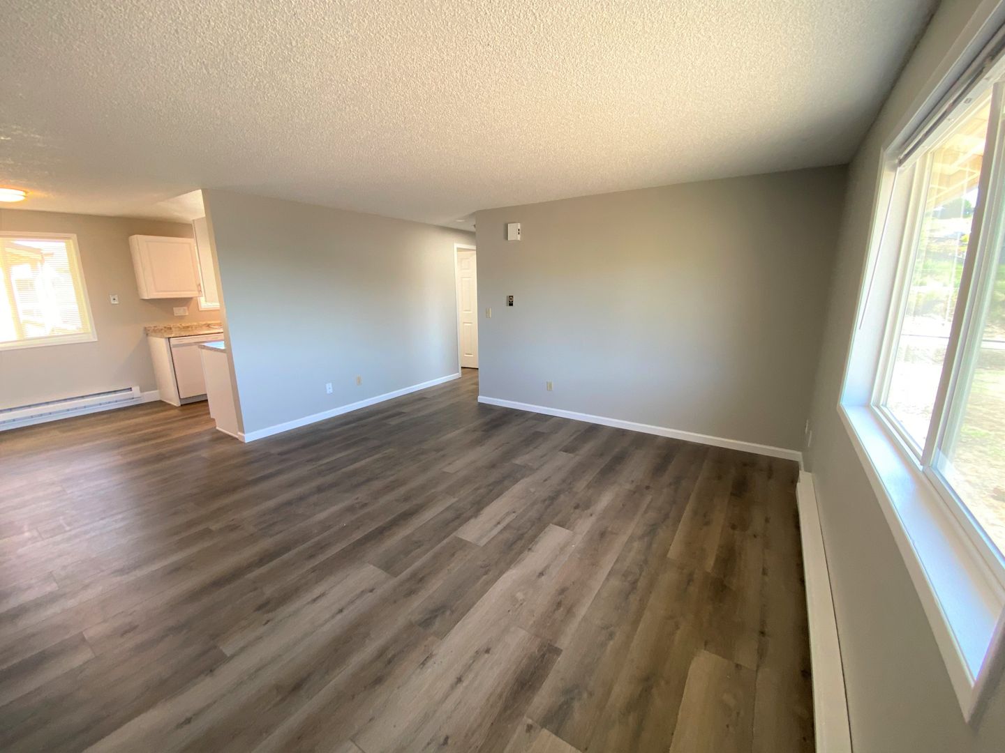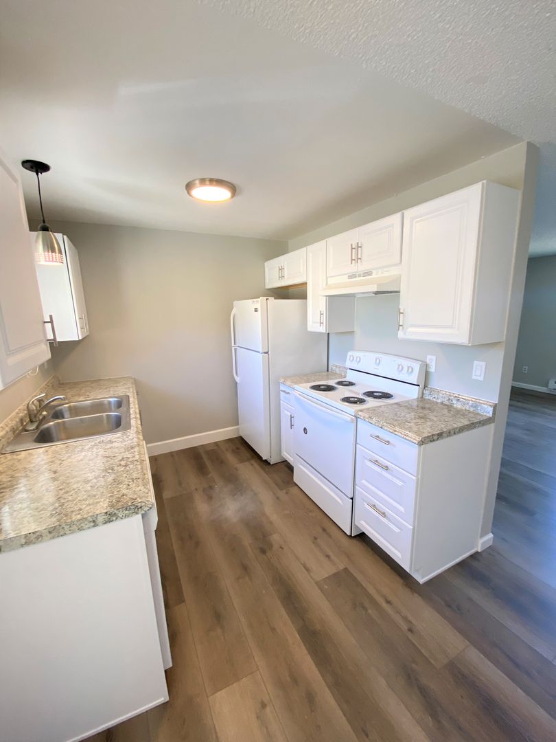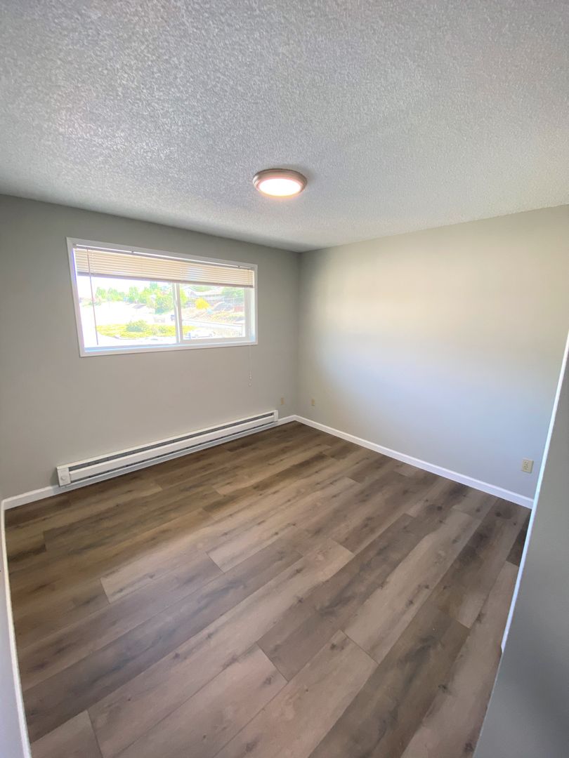 This spacious and sparkling upper-level apartment on the south end of the building shines brightly from a fresh remodel and includes water, sewer, and garbage services with rent! Onsite laundry facilities are right next door, and one assigned parking space is part of the package in this great location with easy access to the freeway and BMCC. One-year lease required with month-to-month terms thereafter.